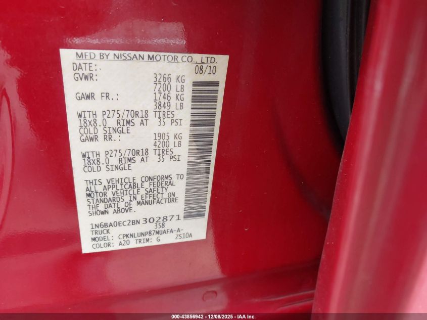 2011 NISSAN TITAN - 1N6BA0EC2BN302871, цвет - Фиолетовый, 5.6, Бензин, Полный привод из США
