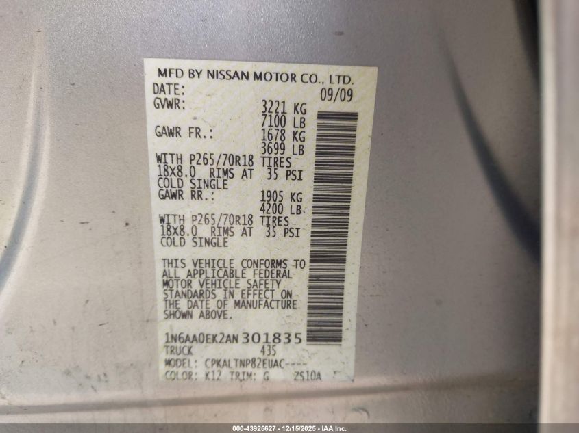 2010 NISSAN TITAN - 1N6AA0EK2AN301835, цвет - , 5.6, Бензин, из США