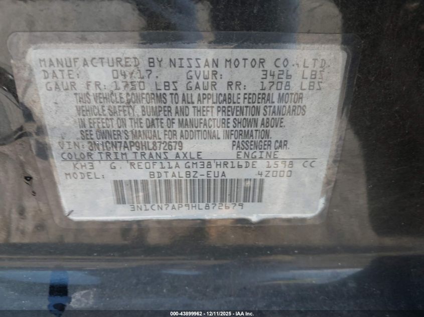 2017 NISSAN VERSA S