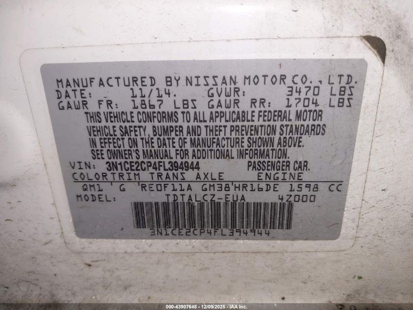 2015 NISSAN VERSA NOTE S