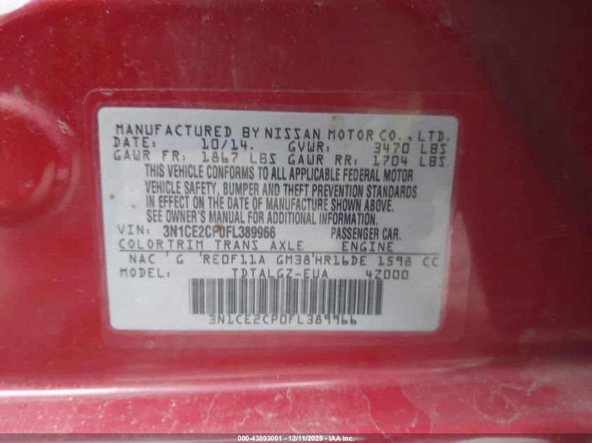 2015 NISSAN VERSA NOTE S