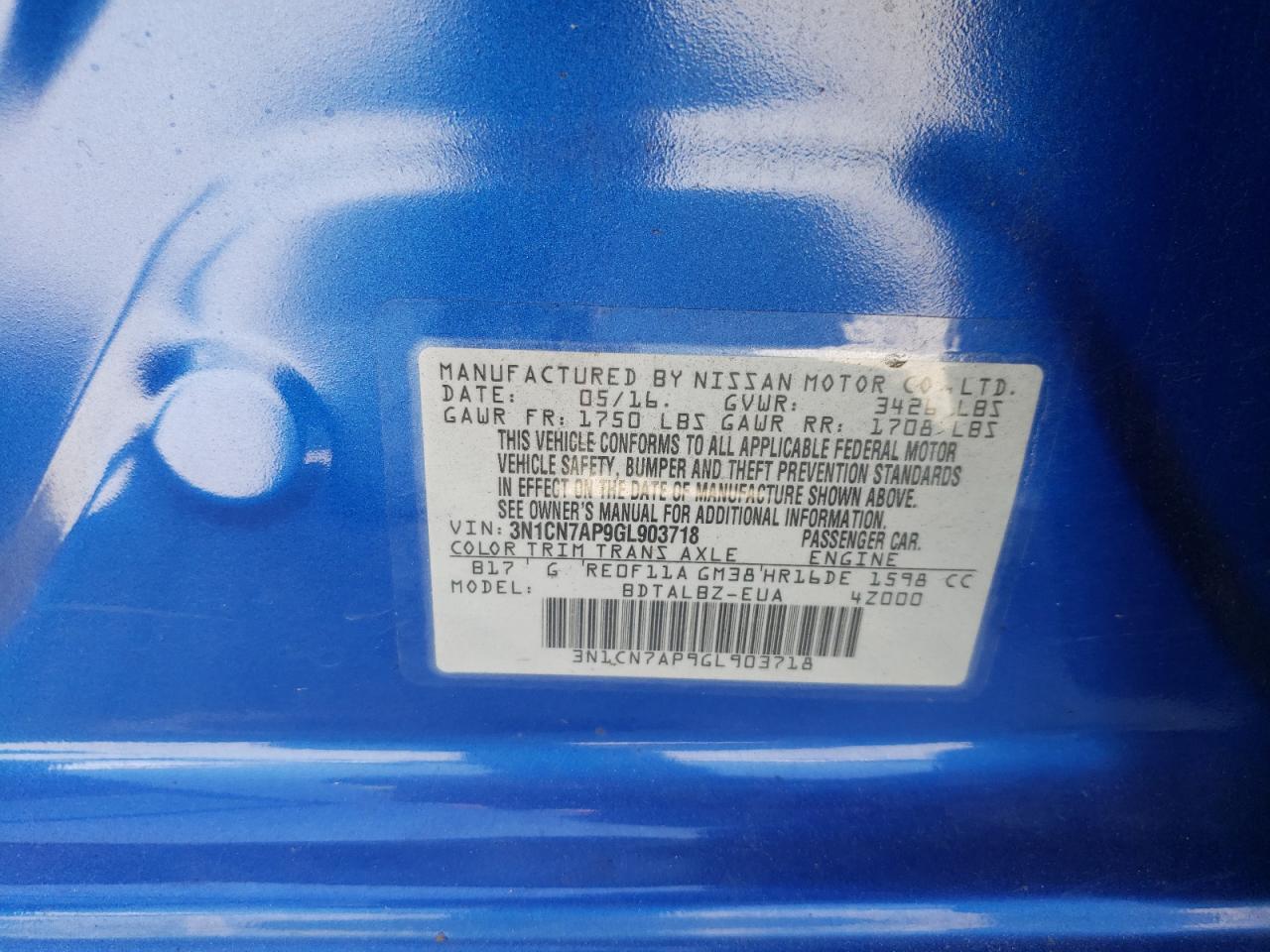 2016 NISSAN VERSA - 3N1CN7AP9GL903718, цвет - Синий, 1.6, Бензин, из США