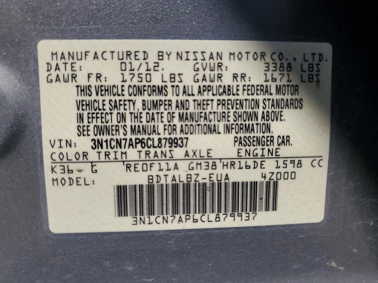 2012 NISSAN VERSA - 3N1CN7AP6CL879937, цвет - Серебряный, 1.6, Бензин, из США
