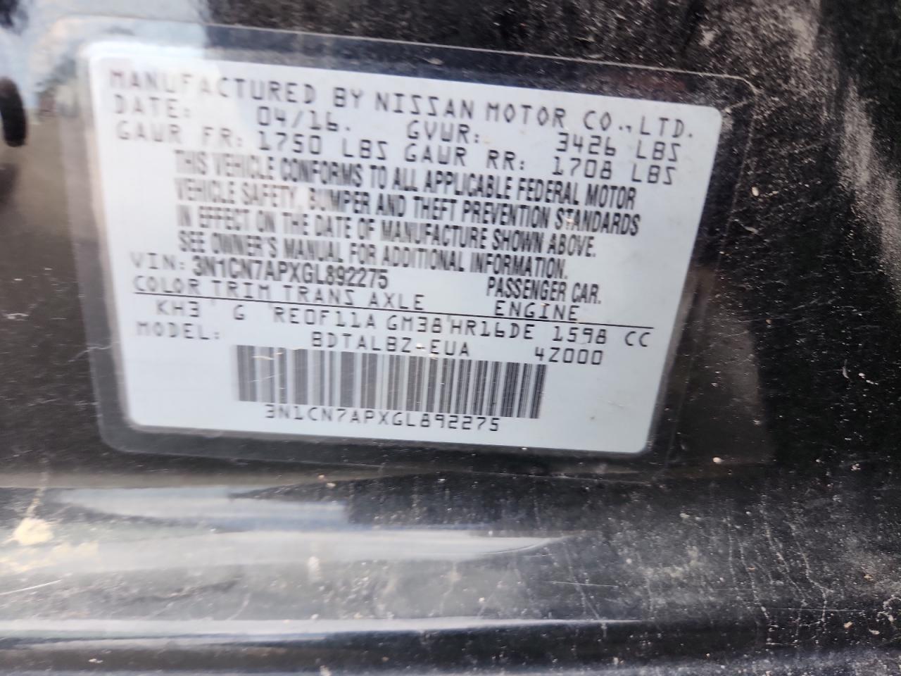 2016 NISSAN VERSA - 3N1CN7APXGL892275, цвет - Черный, 1.6, Бензин, из США
