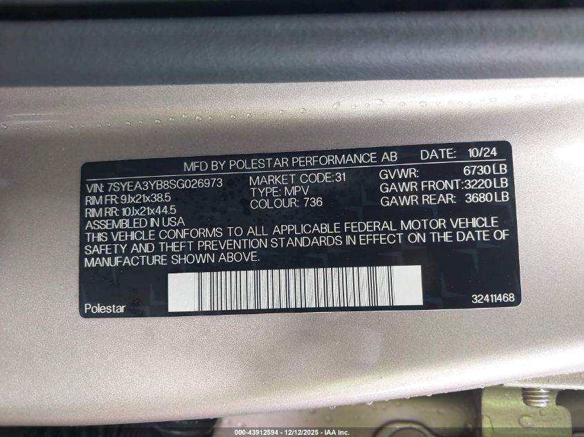 2025 POLESTAR 3 - 7SYEA3YB8SG026973, цвет - Бежевый, 0.0, Электрический, Полный привод из США