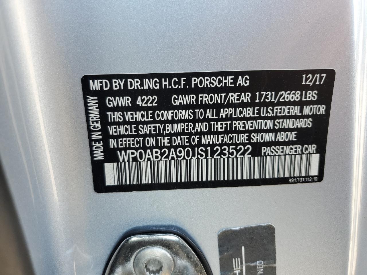 2018 PORSCHE 911 - WP0AB2A90JS123522, цвет - Серебряный, 3.0, Бензин, Задний привод из США