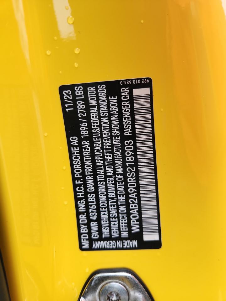2024 PORSCHE 911 - WP0AB2A90RS218903, цвет - Желтый, 3.0, Бензин, Задний привод из США