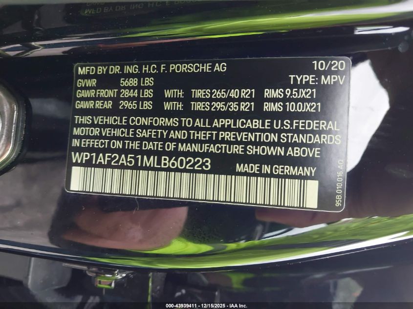 2021 PORSCHE MACAN - WP1AF2A51MLB60223, цвет - Черный, 2.9, Бензин, Полный привод из США