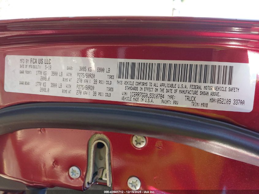 2018 RAM 1500 - 1C6RR7GG0JS310784, цвет - Бордовый, 3.6, Бензин, Полный привод из США