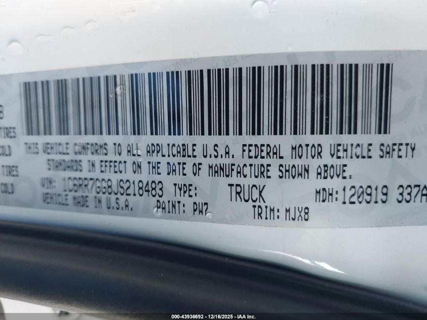 2018 RAM 1500 - 1C6RR7GG8JS218483, цвет - , 3.6, Бензин, Полный привод из США