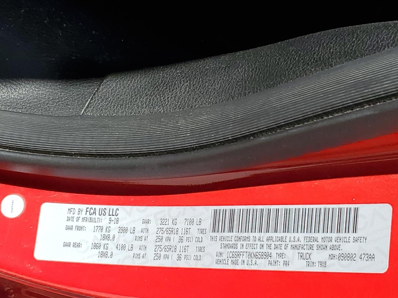 2019 RAM 1500 - 1C6SRFFT0KN658904, цвет - Красный, 5.7, Бензин, 4x4 с задним приводом из США