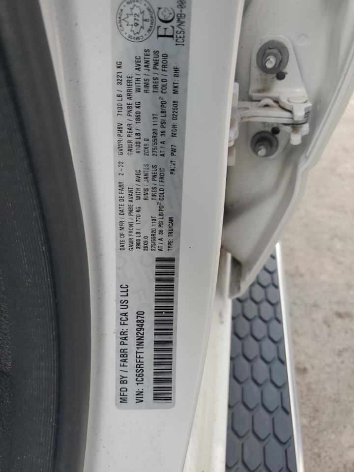 2022 RAM 1500 - 1C6SRFFT1NN294870, цвет - Белый, 5.7, Бензин, 4x4 с задним приводом из США