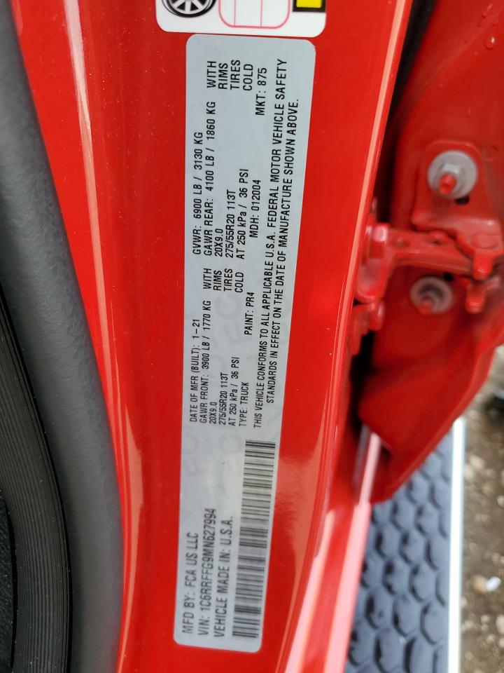 2021 RAM 1500 - 1C6RRFFG9MN627994, цвет - Красный, 3.6, Бензин, 4x4 с задним приводом из США