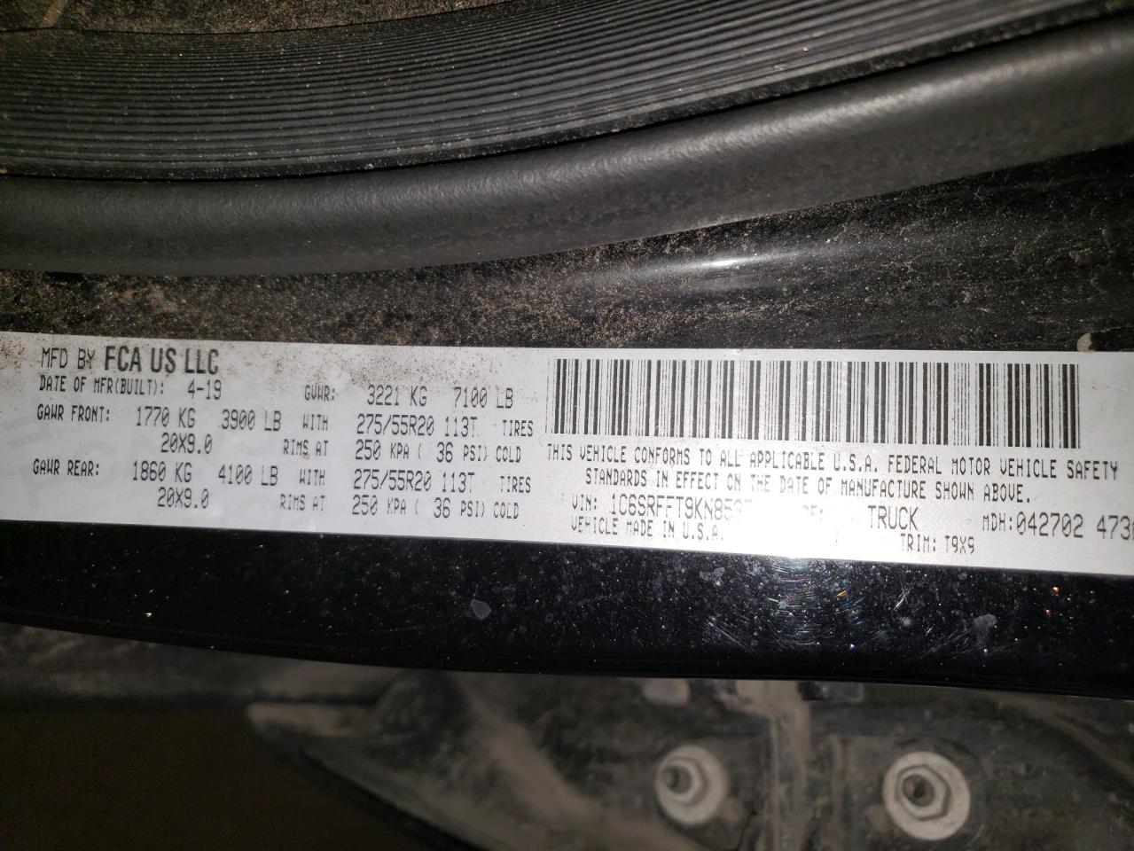 Цвет ЧерныйЦилиндры 8Привод 4x4 с задним приводомVIN 1C6SRFFT9KN853772Состояние Заводится и едет (проверено)Повреждения По бокам