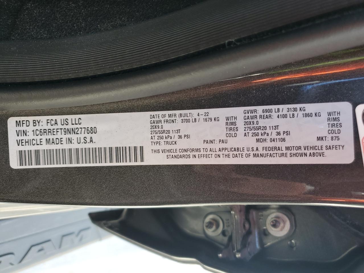 2022 RAM 1500 - 1C6RREFT9NN277680, цвет - Древесный уголь, 5.7, Бензин, Задний привод из США