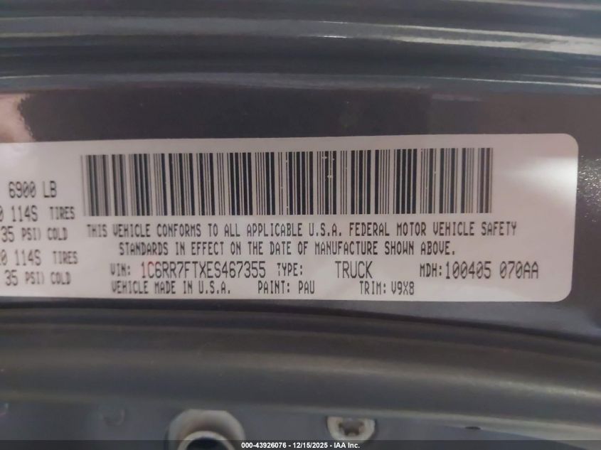 2014 RAM 1500 - 1C6RR7FTXES467355, цвет - Серый, 5.7, Бензин, Полный привод из США