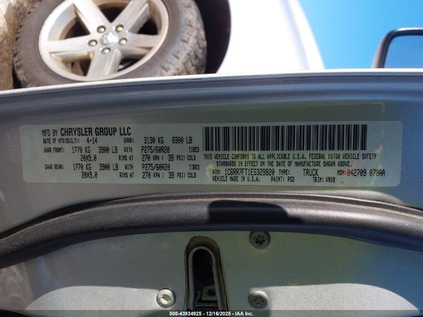 2014 RAM 1500 - 1C6RR7FT1ES329820, цвет - Серебряный, 5.7, Бензин, Полный привод из США
