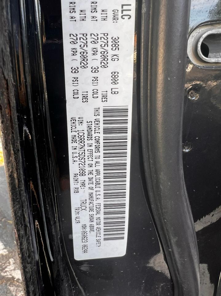 Цвет ЧерныйЦилиндры 8Привод 4x4 с задним приводомVIN 1C6RR7NT5DS721098Состояние Заводится и едет (проверено)Повреждения НезначительныеДата аукциона 2025-10-08