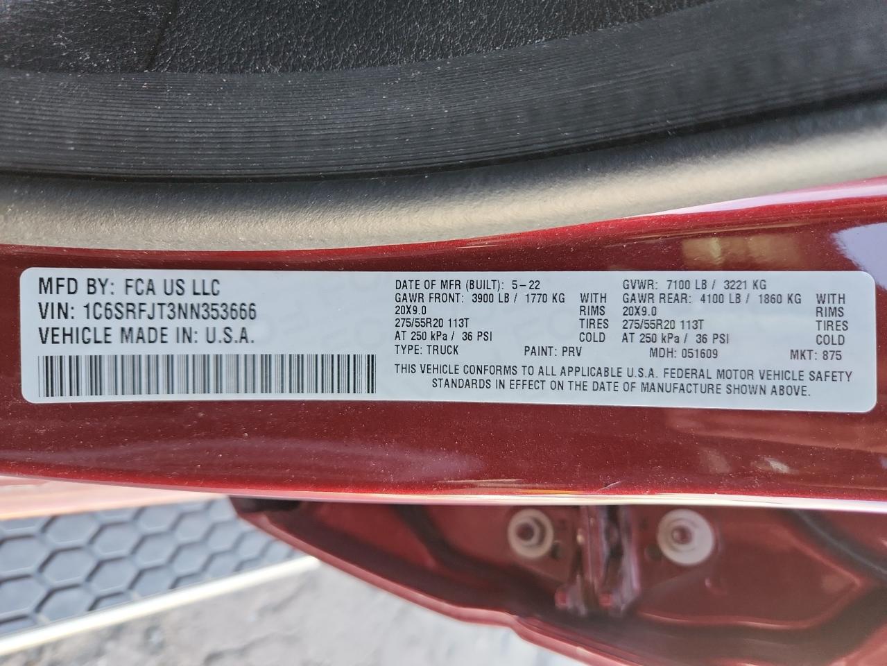 2022 RAM 1500 - 1C6SRFJT3NN353666, цвет - Бордовый, 5.7, Бензин, 4x4 с задним приводом из США