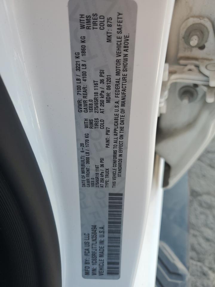 2020 RAM 1500 - 1C6SRFJT7LN358494, цвет - Белый, 5.7, Бензин, 4x4 с задним приводом из США
