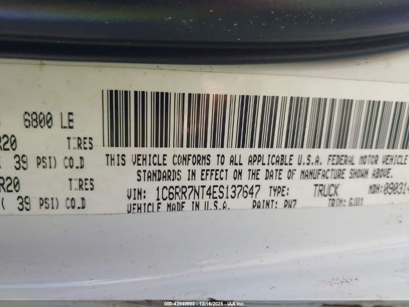 Цвет Цилиндры 8Привод Полный приводVIN 1C6RR7NT4ES137647Состояние НеизвестноПовреждения По всему авто