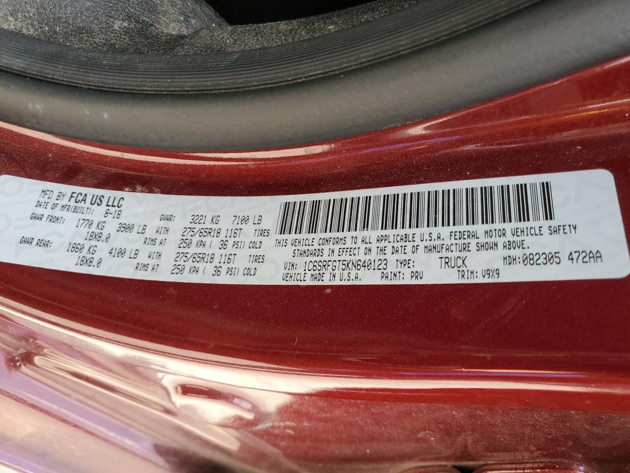 2019 RAM 1500 - 1C6SRFGT5KN640123, цвет - Бургундия, 5.7, Бензин, 4x4 с задним приводом из США