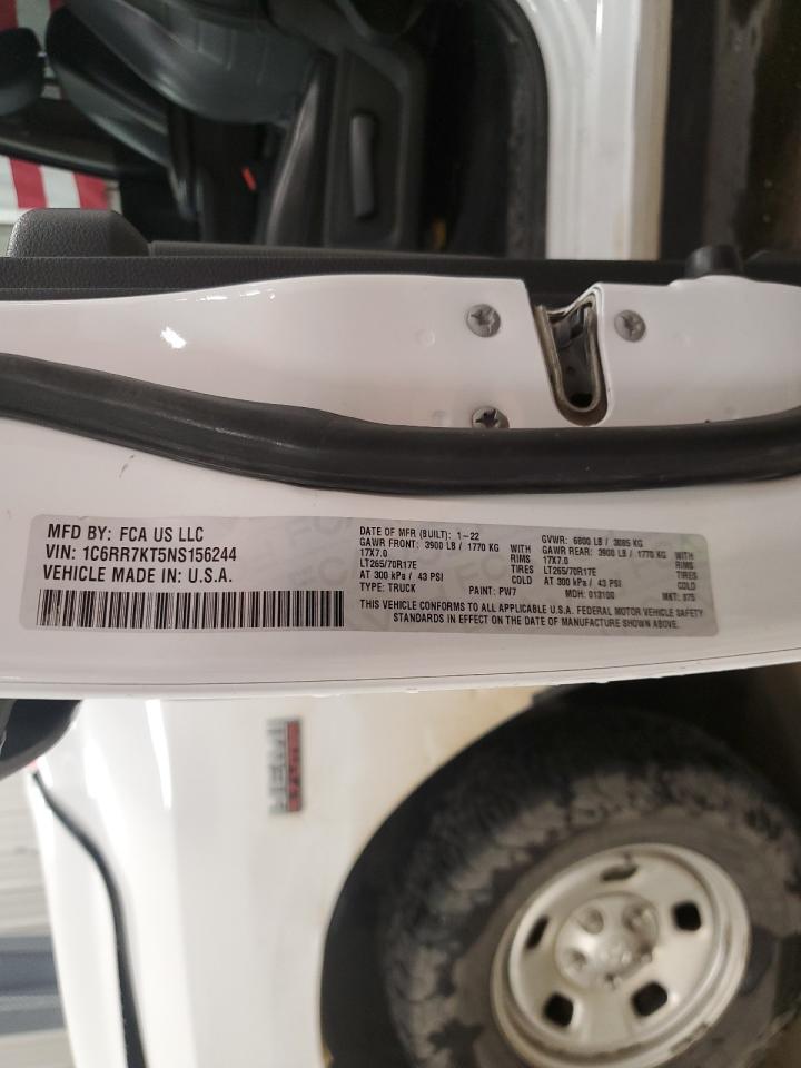 2022 RAM 1500 - 1C6RR7KT5NS156244, цвет - Белый, 5.7, Бензин, 4x4 с задним приводом из США