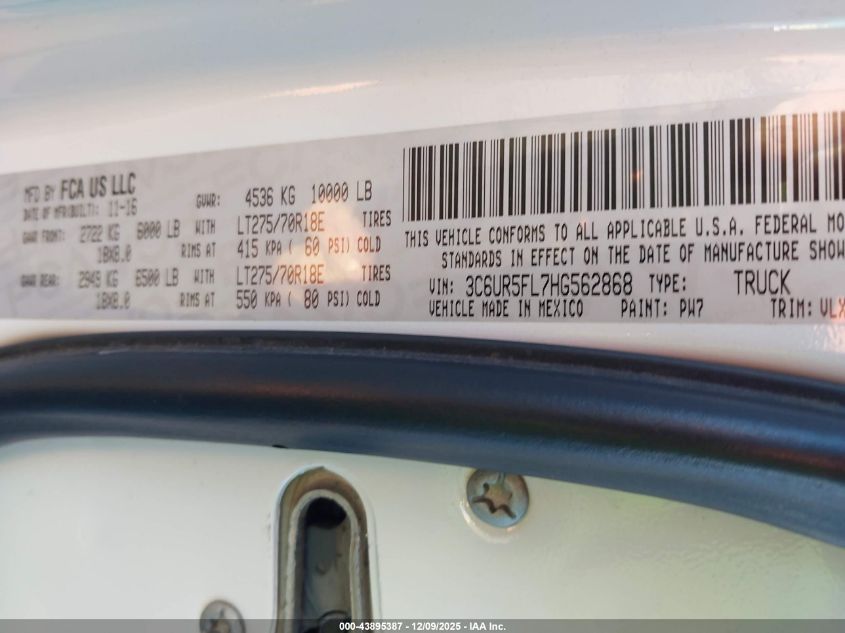 2017 RAM 2500 - 3C6UR5FL7HG562868, цвет - Белый, 6.7, Дизель, Полный привод из США