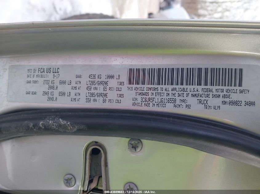 2018 RAM 2500 - 3C6UR5FL1JG116558, цвет - Белый, 6.7, Дизель, Полный привод из США
