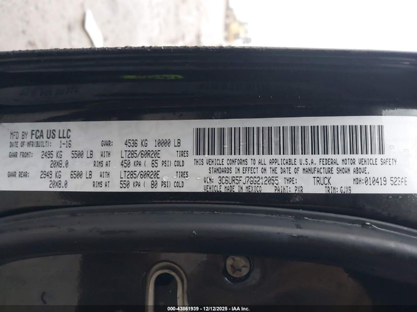 2016 RAM 2500 - 3C6UR5FJ7GG212055, цвет - Черный, 6.4, Бензин, Полный привод из США