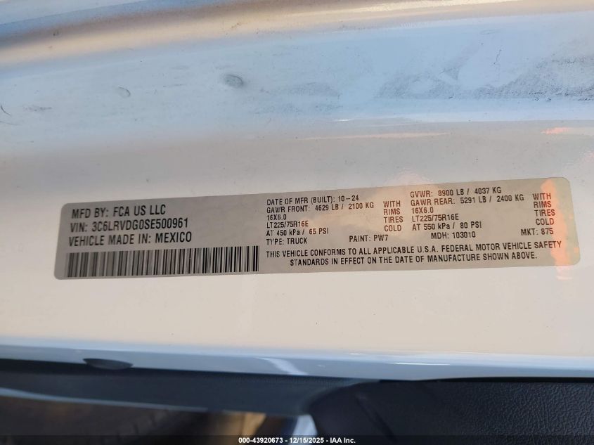 2025 RAM PROMASTER 2500 - 3C6LRVDG0SE500961, цвет - , 3.6, Бензин, Передний привод из США