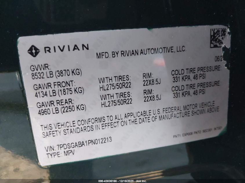 2023 RIVIAN R1S - 7PDSGABA1PN012213, цвет - Зеленый, 0.0, Электрический, Полный привод из США
