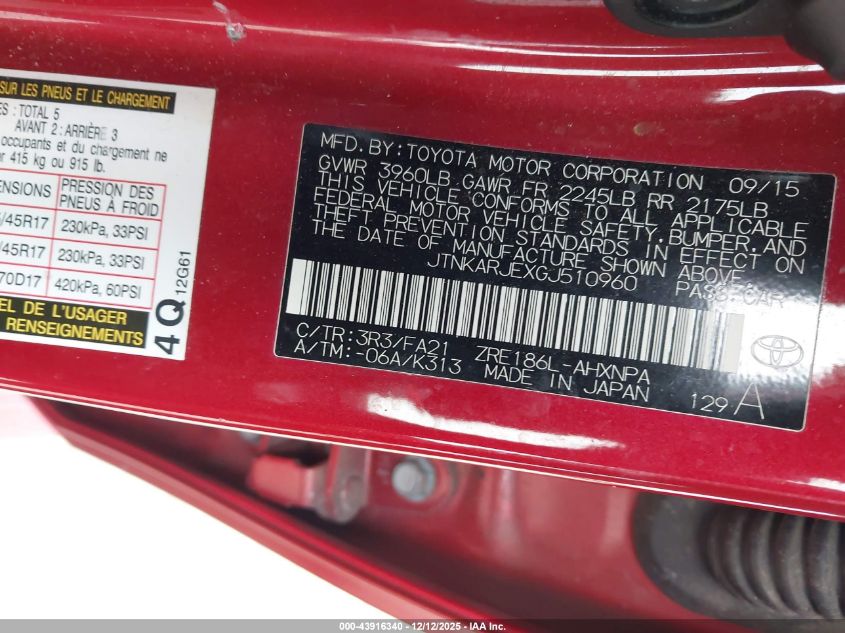 2016 SCION IM - JTNKARJEXGJ510960, цвет - Красный, 1.8, Бензин, Передний привод из США