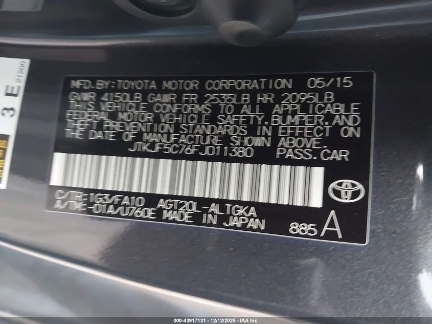 Цвет СерыйЦилиндры 4Привод Передний приводVIN JTKJF5C76FJ011380Состояние Заводится и едет (проверено)Повреждения Передняя правая