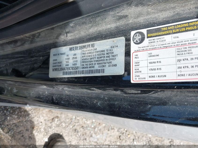 Цвет СеребряныйПривод Задний приводVIN WMEEJ9AA7EK785581Состояние НеизвестноПовреждения Передняя или задняя