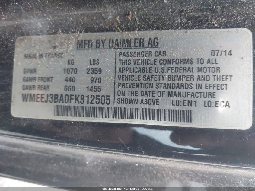 Цвет ЧерныйЦилиндры 3Привод Задний приводVIN WMEEJ3BA0FK812505Состояние НеизвестноПовреждения Обычный износ