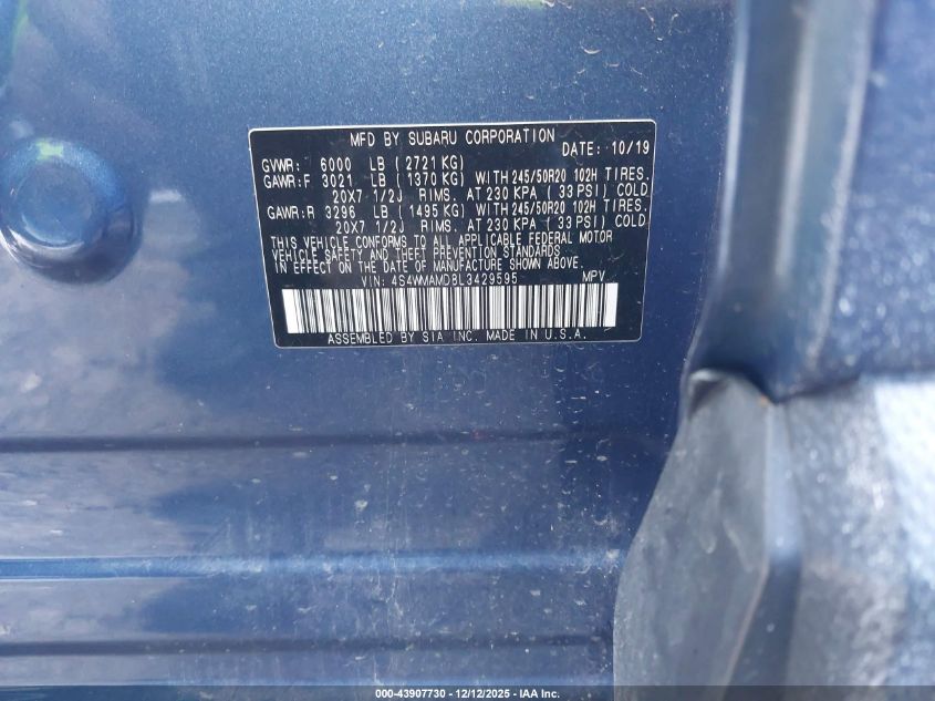 2020 SUBARU ASCENT - 4S4WMAMD8L3429595, цвет - Синий, 2.4, Бензин, Полный привод из США