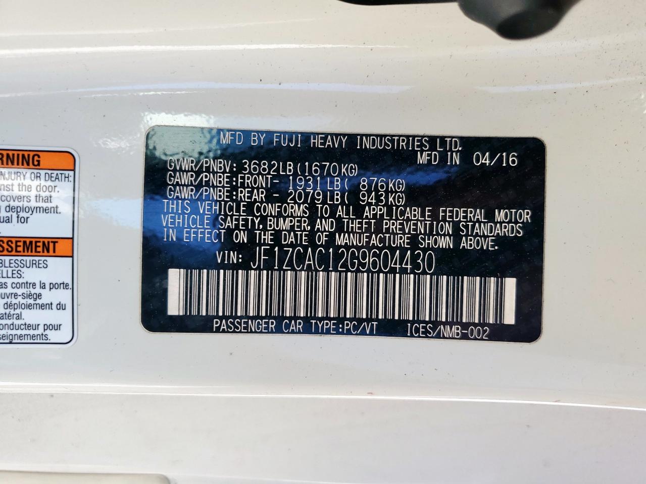 2016 SUBARU BRZ - JF1ZCAC12G9604430, цвет - Белый, 2.0, Бензин, Задний привод из США
