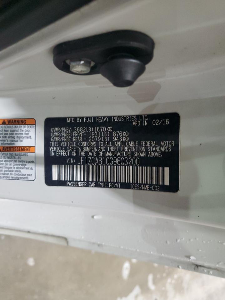 2016 SUBARU BRZ - JF1ZCAB10G9603200, цвет - Белый, 2.0, Бензин, Задний привод из США