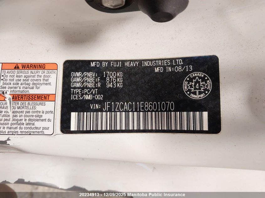 Цвет БелыйЦилиндры 4Привод Задний приводVIN JF1ZCAC11E8601070Состояние ЗаводитсяПовреждения Левая сторонаДата аукциона 2025-12-17