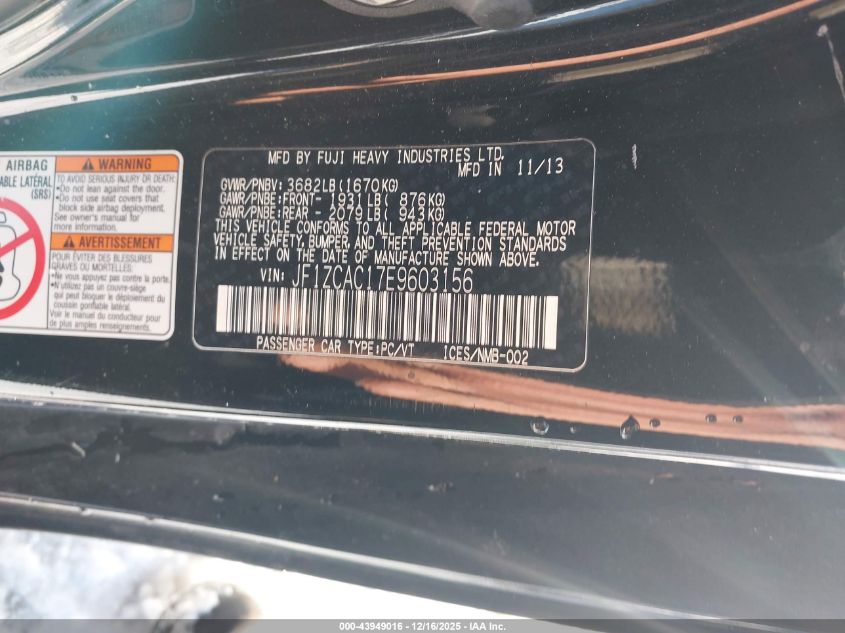 2014 SUBARU BRZ - JF1ZCAC17E9603156, цвет - , 2.0, Бензин, Задний привод из США