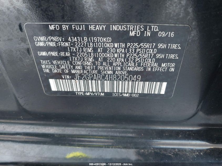 2017 SUBARU CROSSTREK - JF2GPABC4H8205049, цвет - Черный, 2.0, Бензин, Полный привод из США