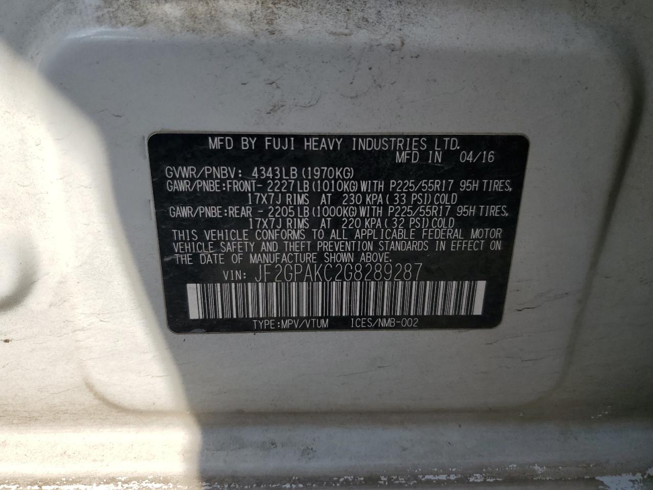 2016 SUBARU CROSSTREK - JF2GPAKC2G8289287, цвет - Белый, 2.0, Бензин, Полный привод из США