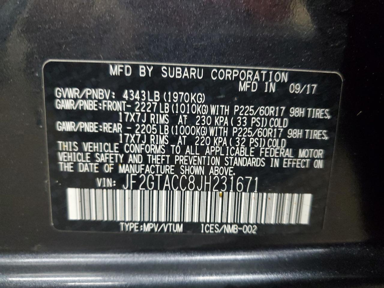 Цвет СерыйЦилиндры 4Привод Полный приводVIN JF2GTACC8JH231671Состояние Заводится и едет (проверено)Повреждения Передняя или задняяДата аукциона 2025-10-08
