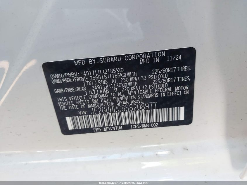 2025 SUBARU CROSSTREK - JF2GUHDC8S8208977, цвет - Белый, 2.5, Бензин, Полный привод из США