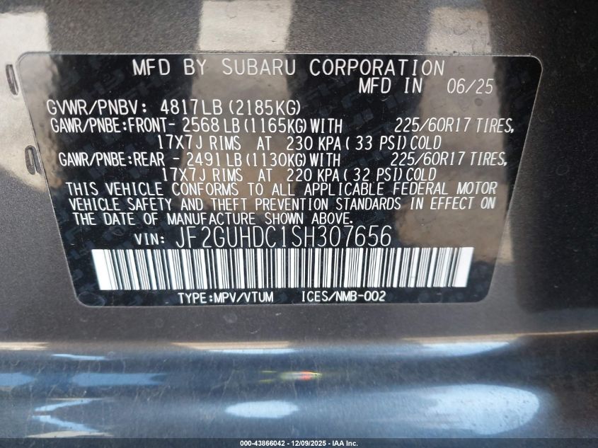 2025 SUBARU CROSSTREK - JF2GUHDC1SH307656, цвет - Серый, 2.5, Бензин, Полный привод из США