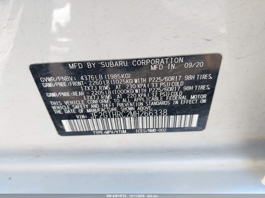 2021 SUBARU CROSSTREK - JF2GTHRC2MH266338, цвет - Белый, 2.5, Бензин, Полный привод из США