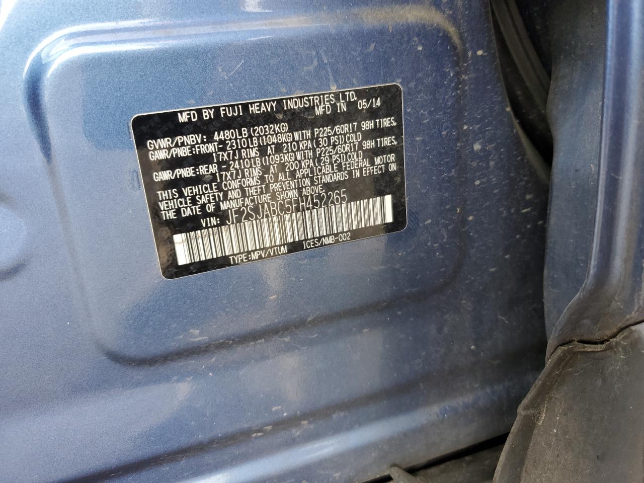 Цвет СинийЦилиндры 4Привод Полный приводVIN JF2SJABC5FH452265Состояние ЗаводитсяПовреждения НезначительныеДата аукциона 2025-10-08