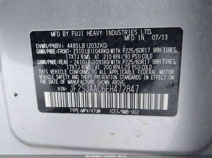 Цвет СеребряныйЦилиндры 4Привод Полный приводVIN JF2SJAAC6EH472847Состояние Заводится и едет (проверено)Повреждения Передняя или задняя