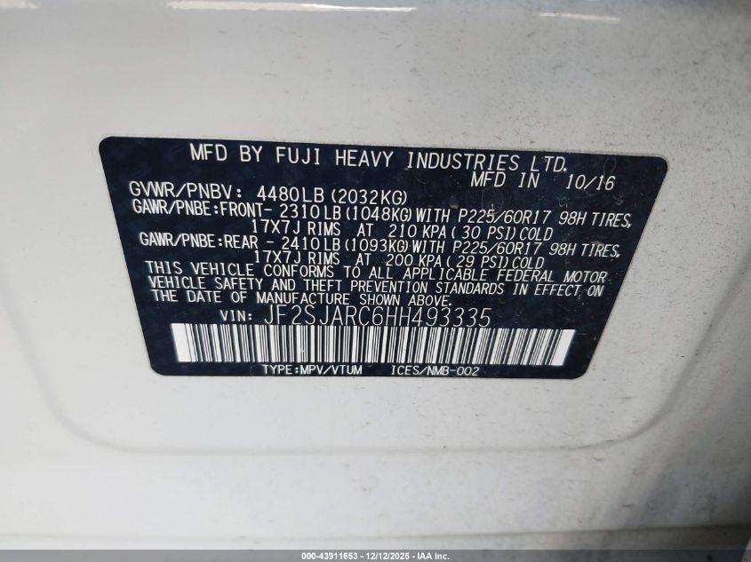 2017 SUBARU FORESTER 2.5I LIMITED